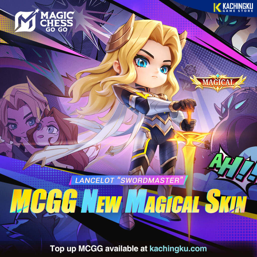 A golden-haired knight clad in armor, wielding a holy sword, ruptures through different dimensions, gracefully awaiting to penalize the next challenger. Lancelot’s Magical Skin “Swordmaster” now available! Magic Chess: Go Go (MCGG) is a new Auto Battler game developed by the original MLBB team.